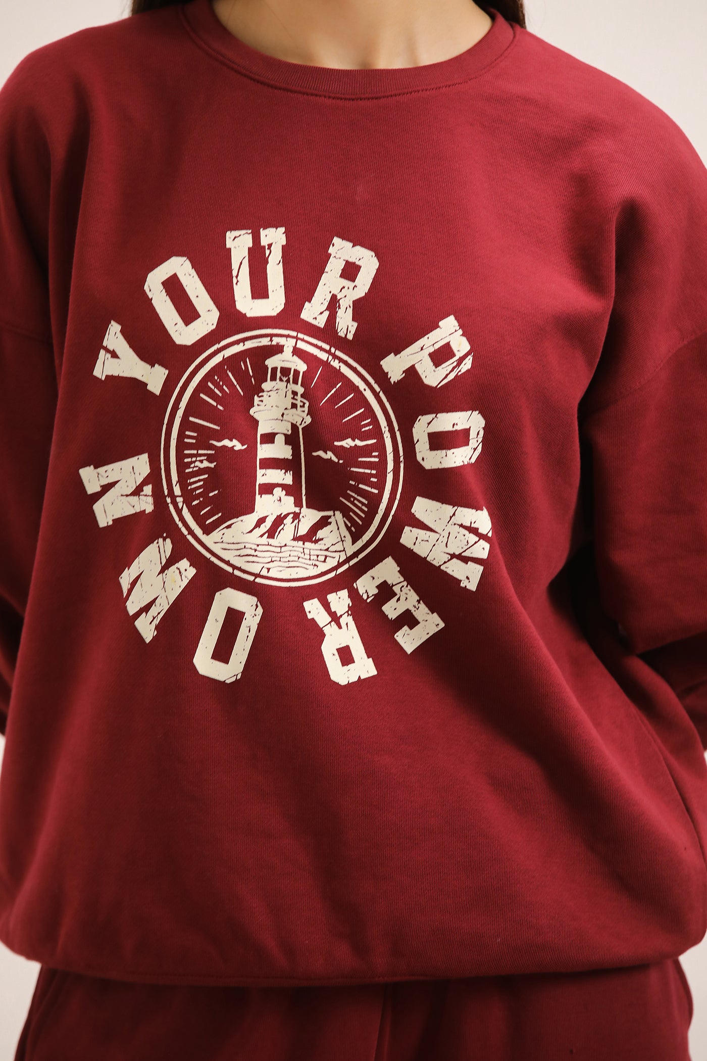 Make a bold statement with this maroon graphic cropped sweatshirt that brings contemporary style to your everyday wardrobe. The rich maroon tone pairs beautifully with the eye-catching graphic design, creating a piece that works equally well for casual outings or relaxed hangouts with friends. The cropped silhouette offers a modern, flattering fit that complements various body types and styling preferences. Crafted for comfort and durability, this sweatshirt is your go-to layer for effortless, confident looks throughout the season.