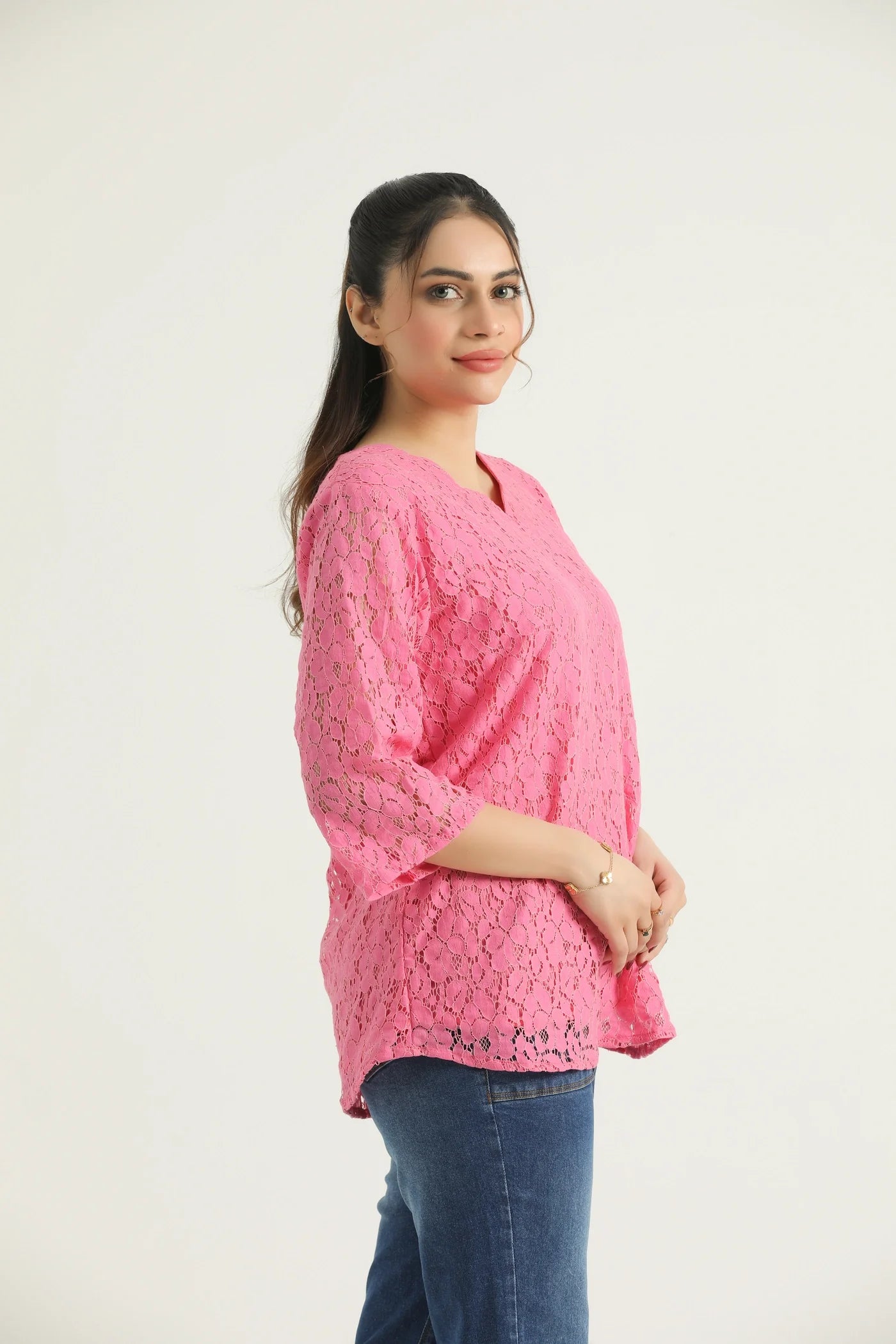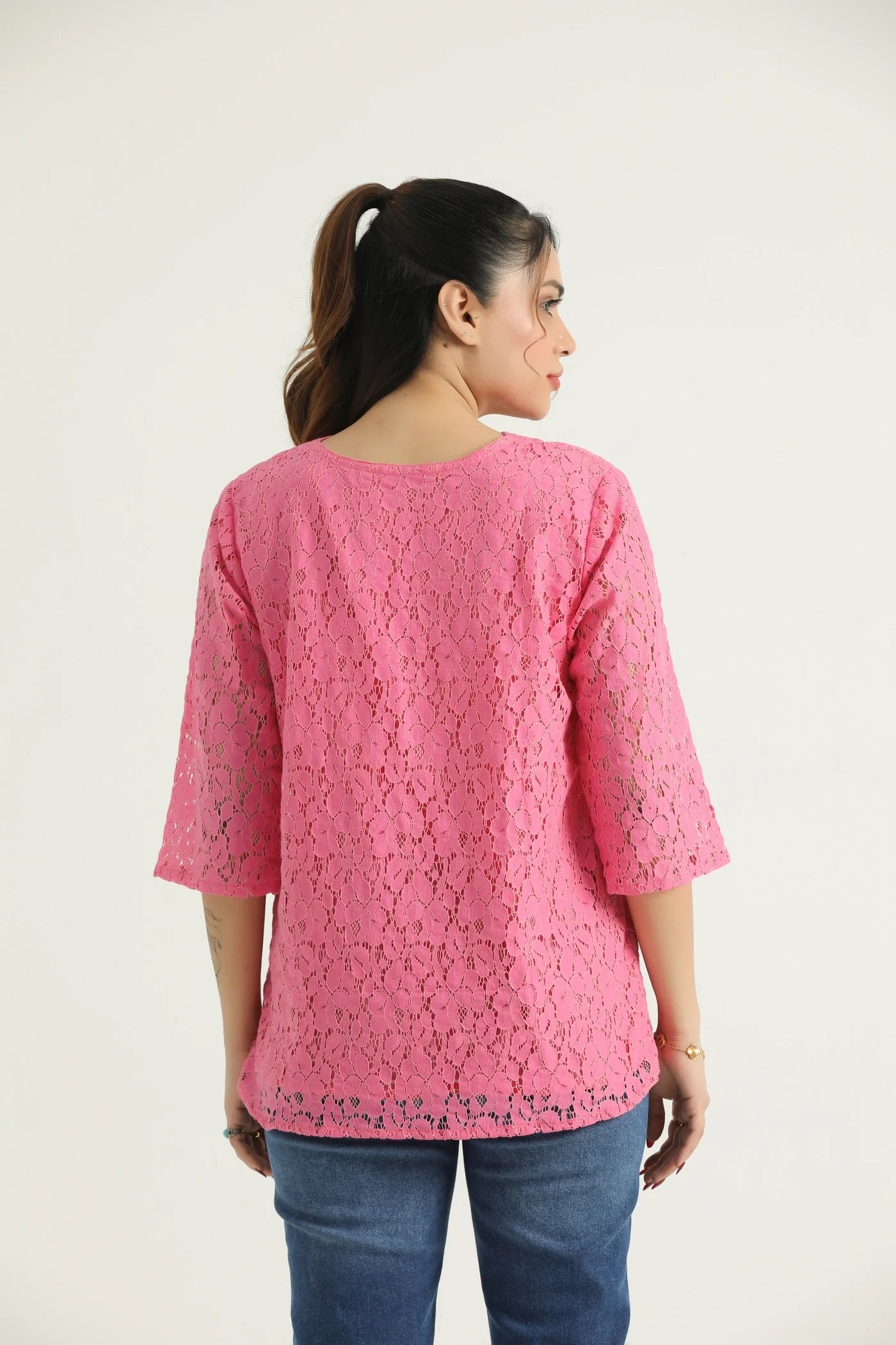 Vibrant lace top designed with underlining attached that provides full coverage while maintaining the delicate transparency of lace. Elegant elements that strike the perfect balance between feminine detail and everyday wear ability.
