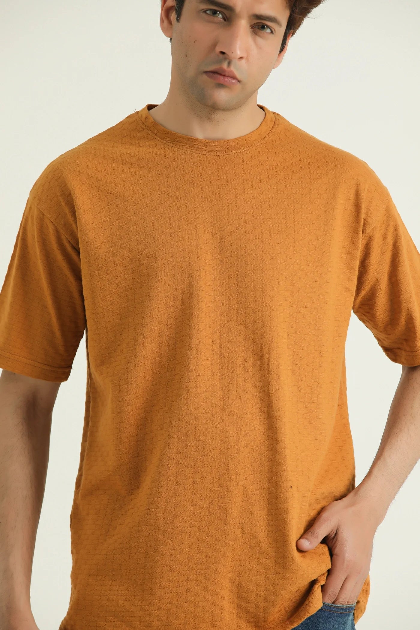 Infuse your casual wardrobe with warmth and texture with our Rich Terracotta Textured Knit T-Shirt. This distinctive tee stands out with its vibrant terracotta or burnt orange hue, bringing an inviting earthy tone to your look. Crafted from a soft, breathable fabric, it features a subtle yet intriguing all-over textured knit pattern, adding depth and a tactile dimension that elevates it beyond a basic tee. Designed for a comfortable, relaxed fit with a classic crew neck and short sleeves, this t-shirt is a versatile choice for adding a touch of color and character to any casual ensemble.