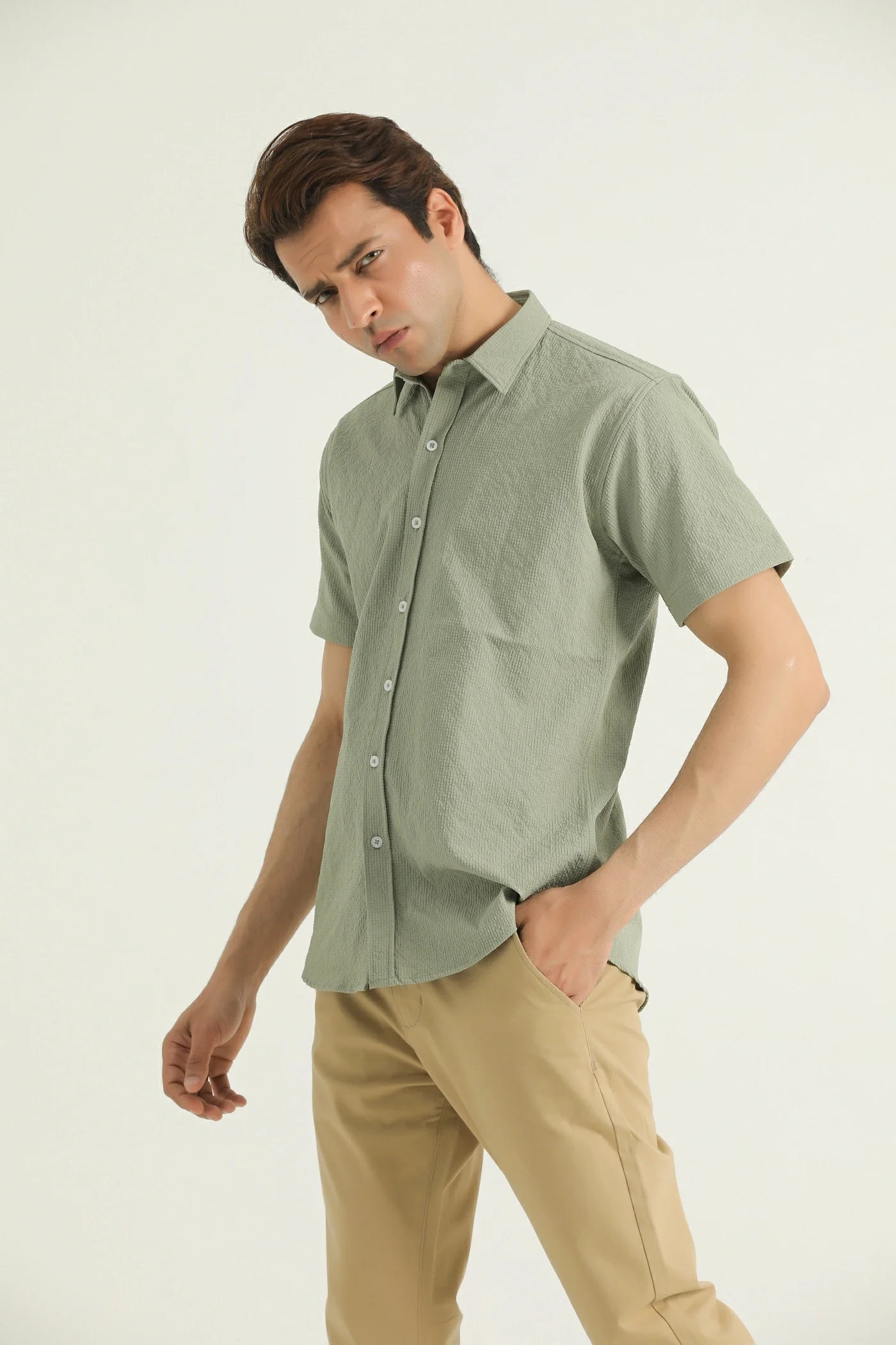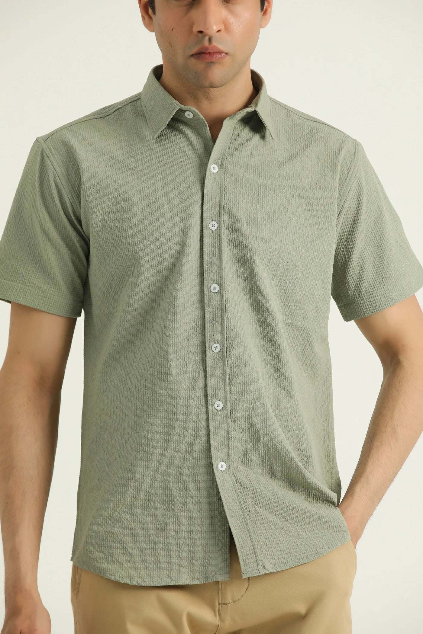 The crisp irish green color enhances its versatility, making it suitable for casual outings, workdays, or evening events. The shirt includes a structured collar and front button closure, giving it a polished edge while the short sleeves keep it laid-back and cool.