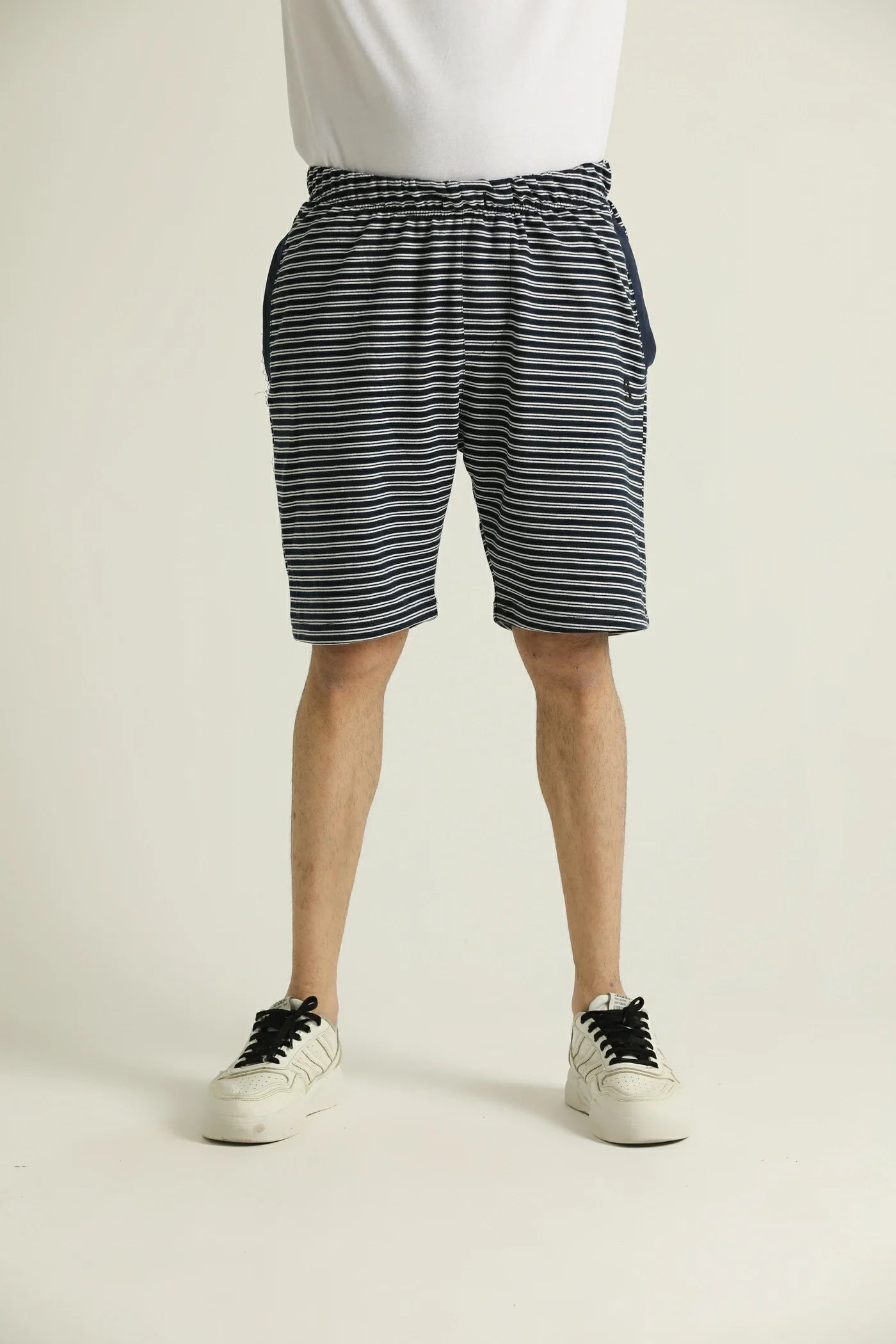 Step into effortless style and comfort with our Men’s Casual Striped Drawstring Shorts. Designed for both relaxed lounging and active days, these shorts feature a timeless horizontal stripe pattern in classic navy and white, offering a clean, nautical-inspired look.